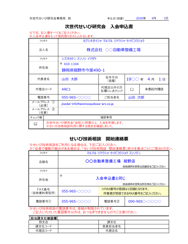 1. 入会申込書兼せいび技術相談開始連絡票(必ずご提出ください)